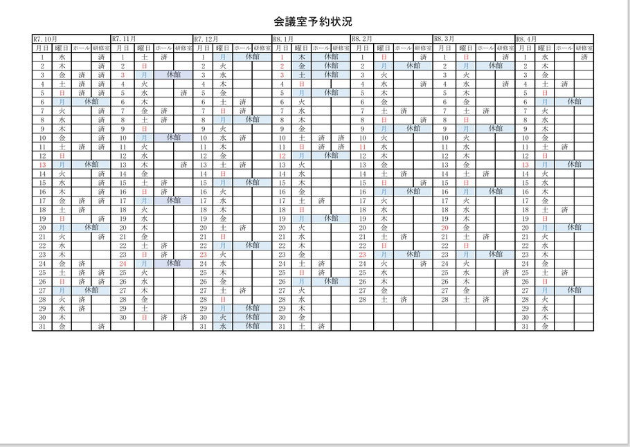 利用時間:9時から21時まで(但し、申込受付は、火曜日~金曜日は9時30分から18時30分、土曜日、日曜日、祝日は9時から18時)